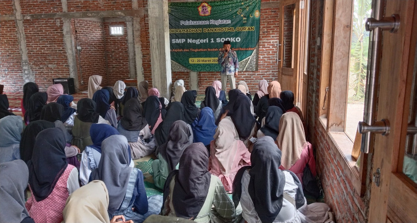 Sooko, Jum’at 21 Maret 2025 – SMPN 1 Sooko kembali menyelenggarakan kegiatan Pondok Ramadhan sebagai bagian dari upaya memperkuat aqidah dan meningkatkan ibadah para siswa di bulan suci Ramadhan. Kegiatan yang berlangsung di lingkungan sekolah ini diikuti oleh seluruh siswa yang beragama Islam dengan penuh antusias dan semangat untuk memperdalam pemahaman keislaman mereka.
